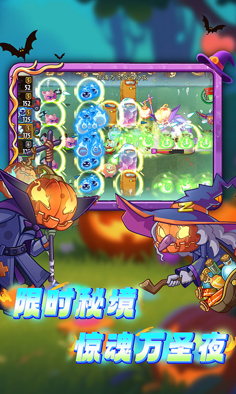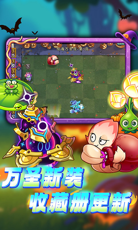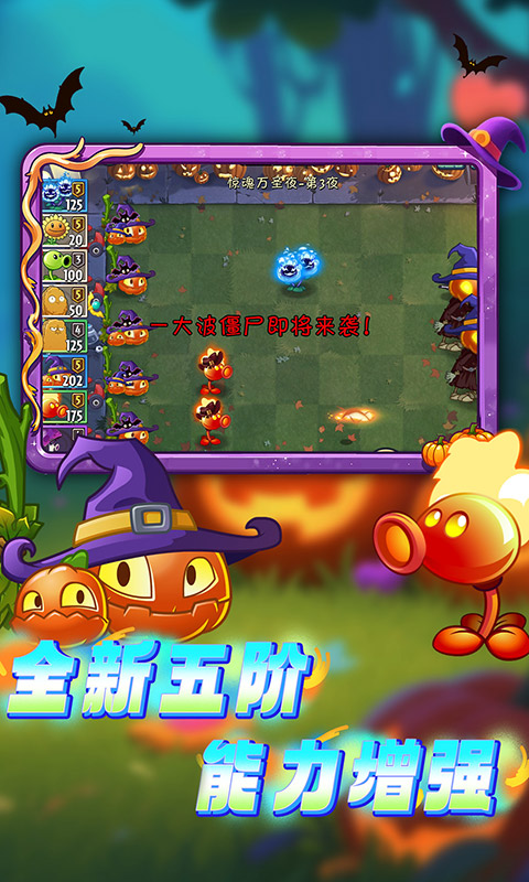 万圣前夜,植物和僵尸们的“不给糖就捣乱”大战即将拉开帷幕。新地图、新关卡,满满的万圣节氛围席卷而来,一大波万圣节主题僵尸即将来袭,保护好你的脑子……还有糖果!