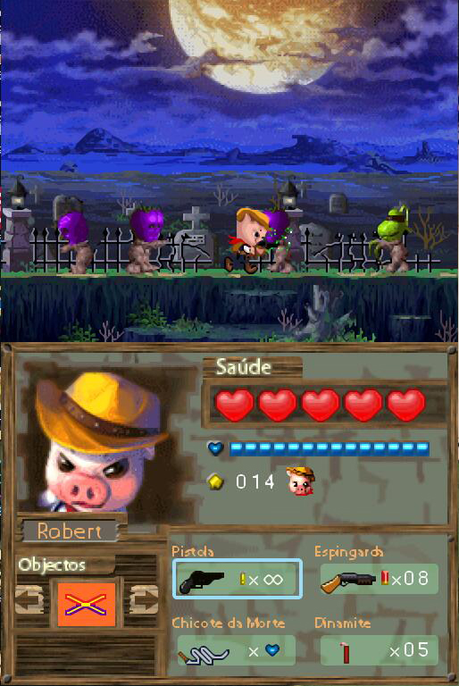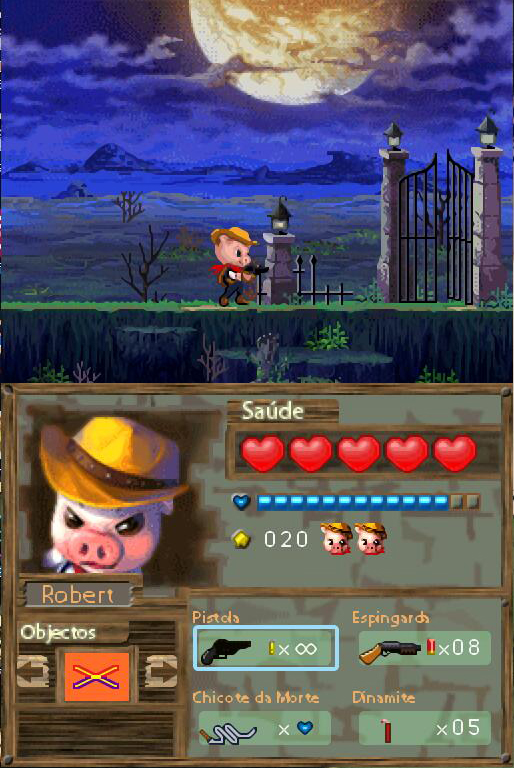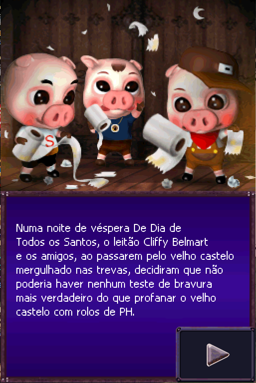 这是一款把《恶魔城》中的西蒙换成猪的动作游戏……游戏的故事讲述的是小猪在万圣节那天被恶魔抓到怪物的城堡中,而他的父亲——恶魔猎猪当然不能坐视不管,于是它带上祖传的皮鞭和手枪,开始了拯救自己孩子的战斗。