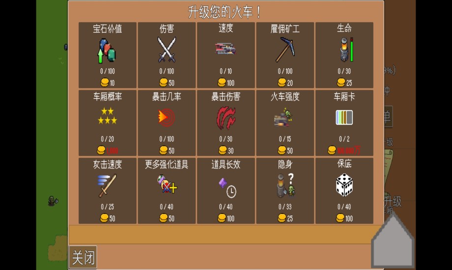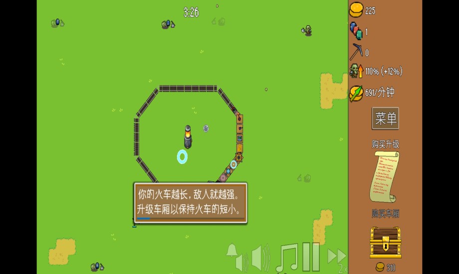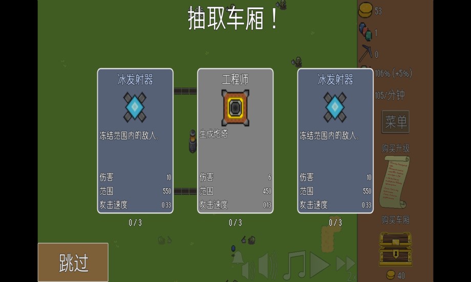 购买 3 个同类型的车厢可以将其升级到下一等级。例如,购买 3 个 1 级狙击炮将合并成一个 2 级狙击炮,而 3 个 2 级狙击炮则会合并成一个 3 级狙击炮。你可以这样无限地升级下去!