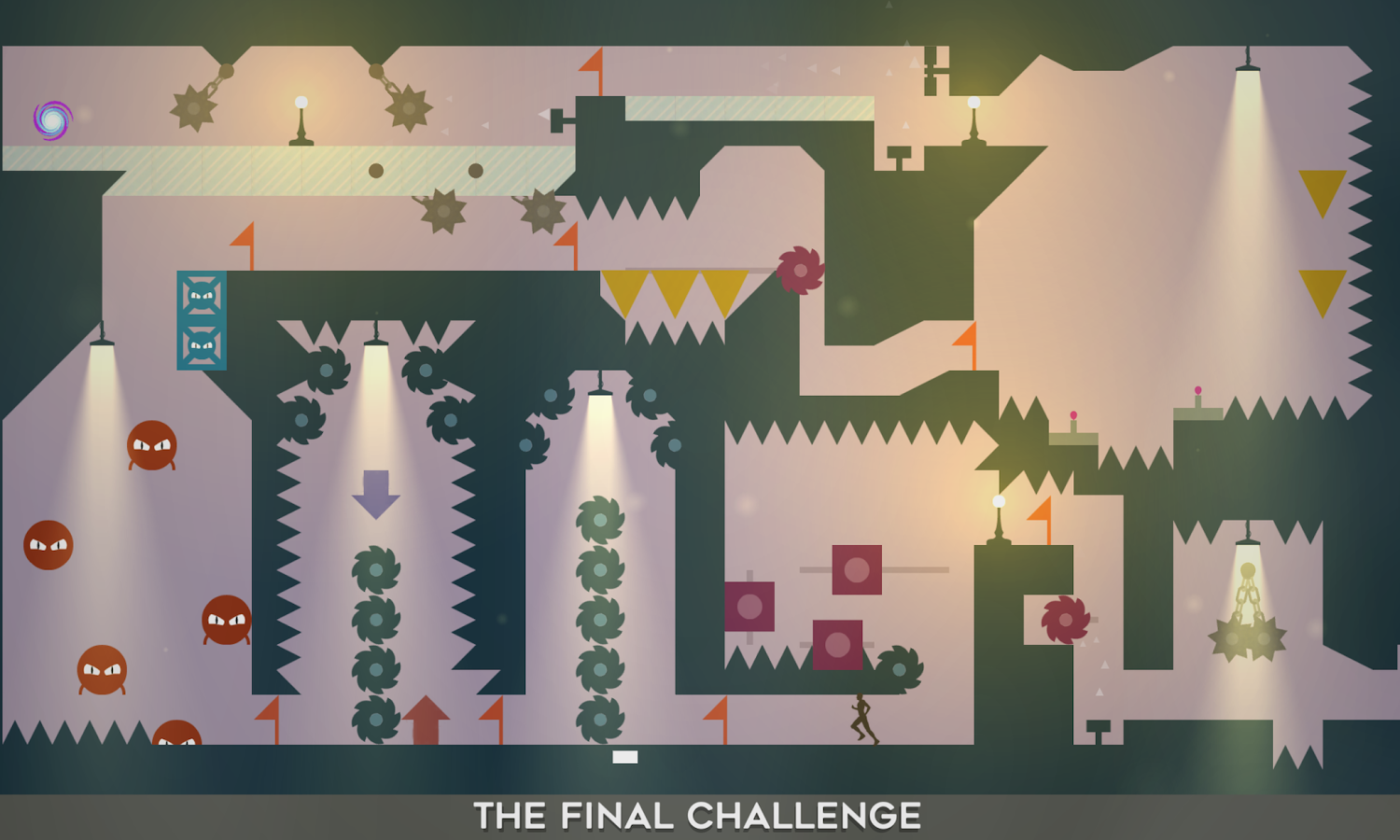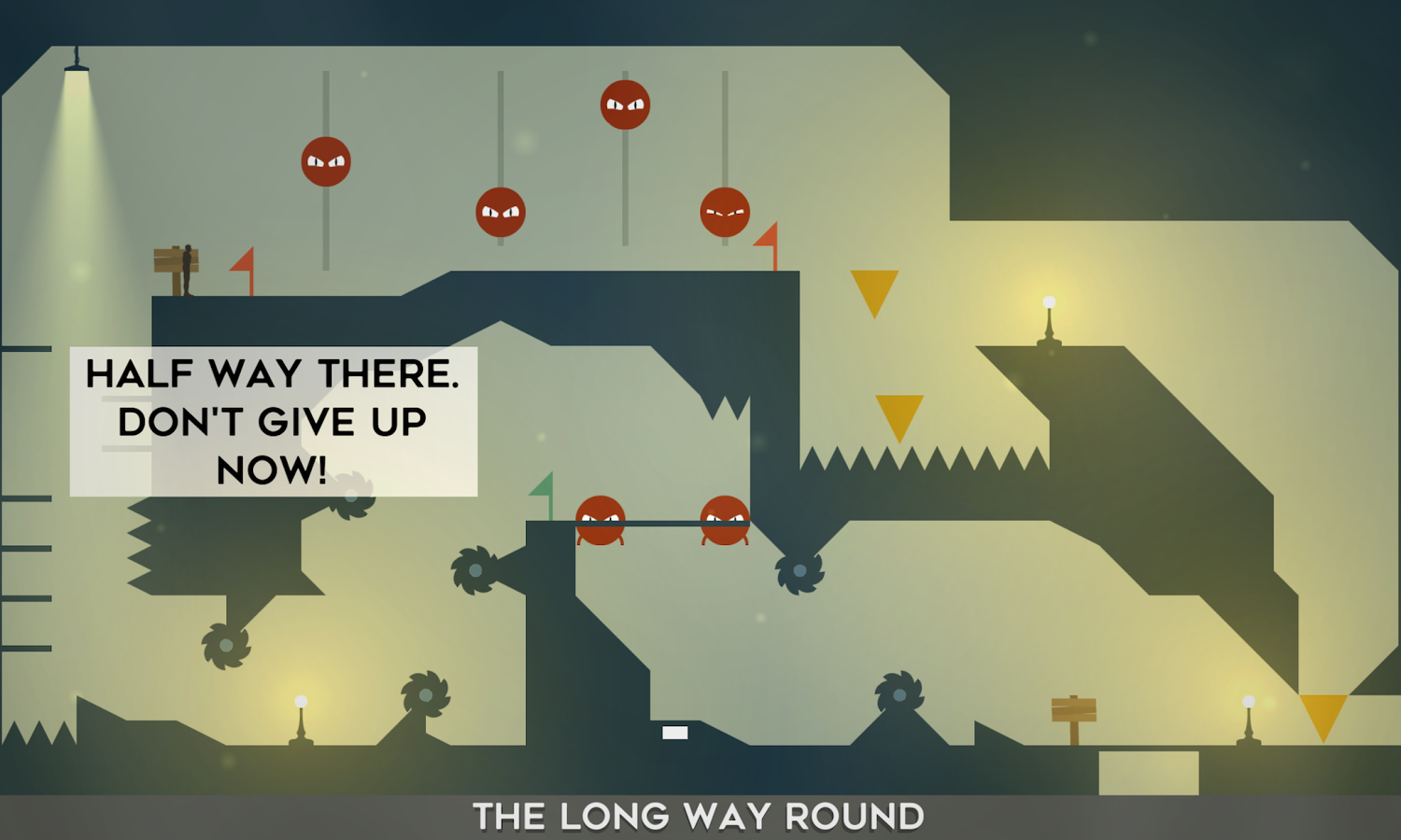 这款游戏里没有跳跃键,当你要走到陷阱的时候会自动跳起来。 如果你想要通过这个游戏,你需要智慧和技巧。这不是一件简单的事情,因为你会遇见怪兽,圆锯,摆锤,弹簧,气球,重力翻转箭头。