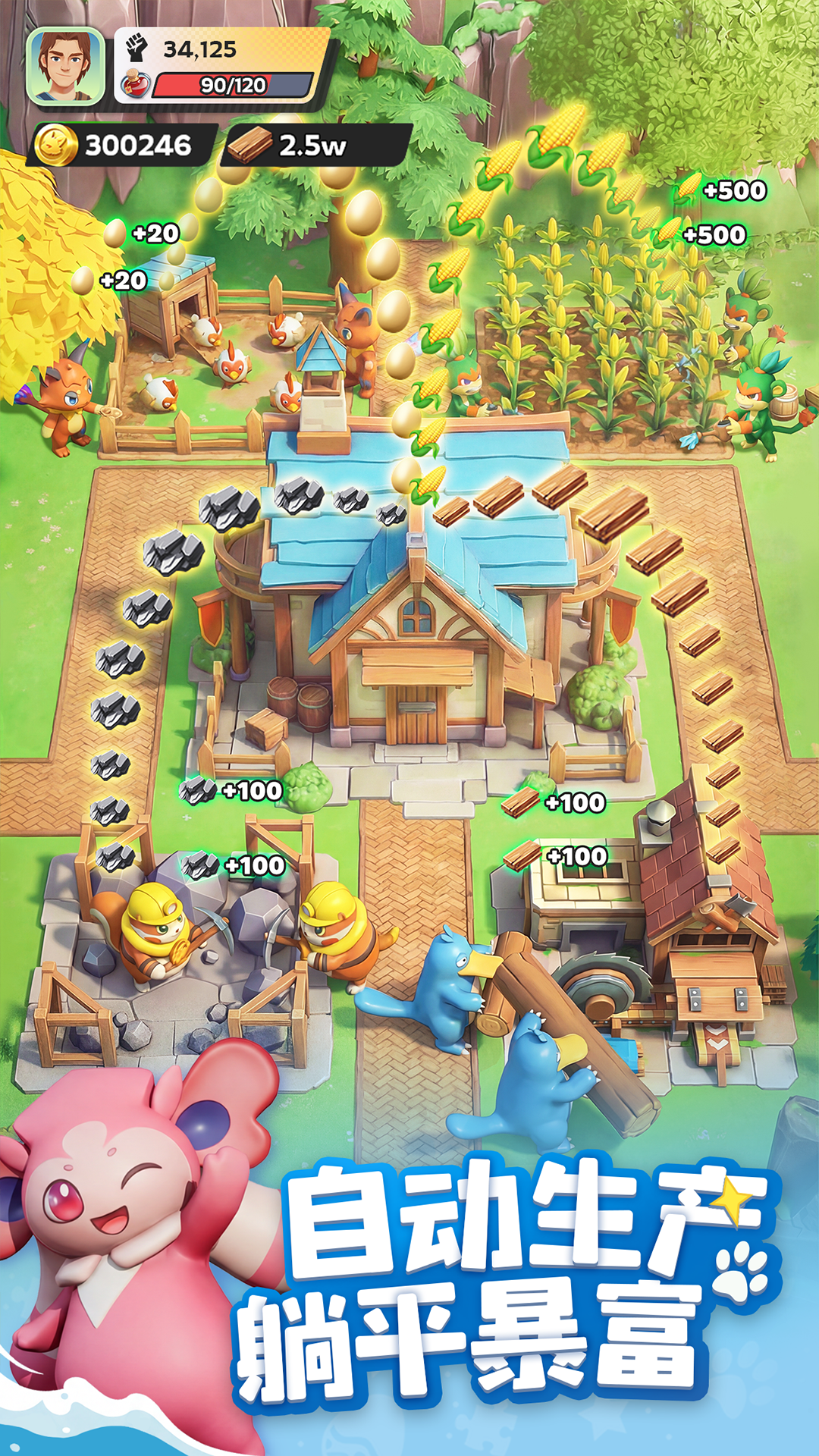 体验真实的“管理者”乐趣。根据帕萌的性格与特长进行分工:让强壮的负责【采矿】,灵巧的负责【伐木】,热情的负责【发电】。看着营地资源在帕萌的辛勤劳动下飞速增长,享受“坐享其成”的快乐。