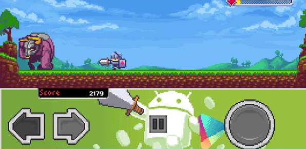 与我们熟悉的横版动作游戏颇为不同的是,《屠龙骑士(Slayin)》将场景进行了限制,玩家能够活动的区域不再是呈卷轴式不停滚动前进,而是固定在了一个区域内——玩家所扮演的角色要像无尽跑酷游戏中那般不停地奔跑,同时挥动刀剑、举起法杖攻击敌人。在这个过程中,玩家要做的其实只有两件事而已:利用方向键控制角色面向,以及点击圆形按键跳跃躲避。