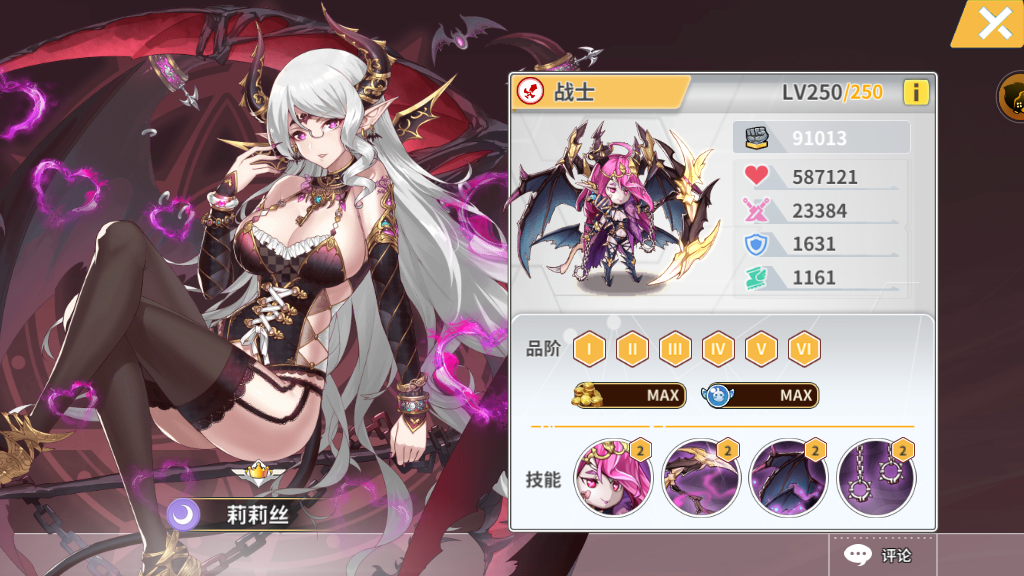 1.对敌方随机4名妖怪造成205%攻击伤害,额外造成目标当前生命值20%伤害(不超过莉莉丝攻击力的1000%),并有50%几率使目标进行缴械(无法普攻)2回合