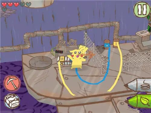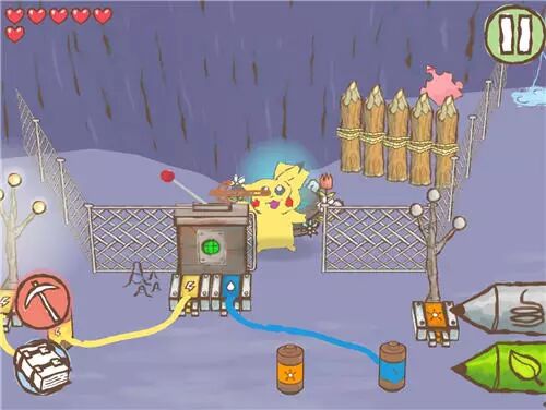 8、之后我们按照电池在中间,两端必须有电极的原理,然后一个个连接上相同的颜色电极,这样的话就可以消灭掉围绕在电池周围的怪物。