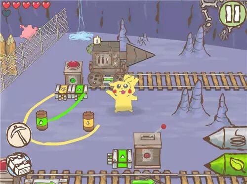 9、不过我们发现剩下最下方黄色的缺少一个电池,这里它是可进行远距离的连电线。其中黄色的连接电线需要注意,千万不能跨越过铁轨,我们要记得只能在地上才能连接哦。